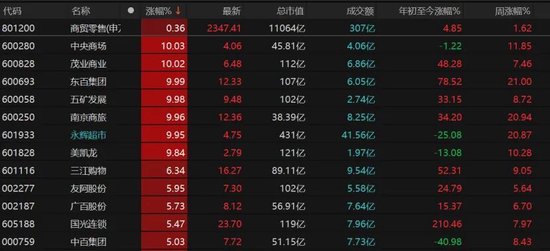 商贸零售板块逆市抬头,、、、、、、7只相关个股涨停。