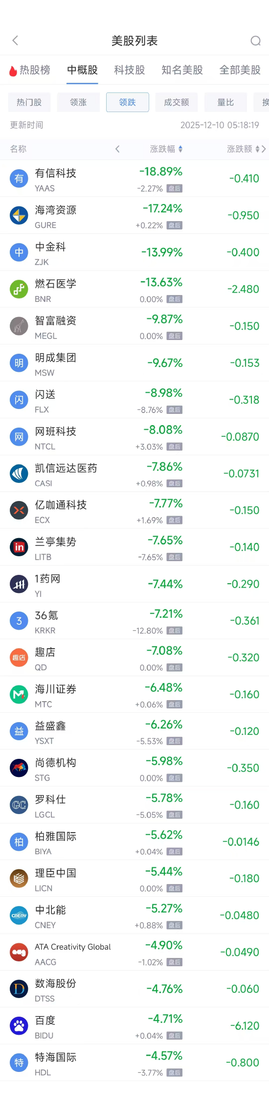 下跌股当中(按市值从高到低),巴巴跌1.38%,跌0.41%,跌0.07%,携程跌0.04%,跌4.71%,跌0.74%,跌0.22%,跌1.10%,跌3.78%,小鹏汽车跌3.46%,汽车跌3.12%,跌0.71%,跌1.47%,满帮跌1.72%。