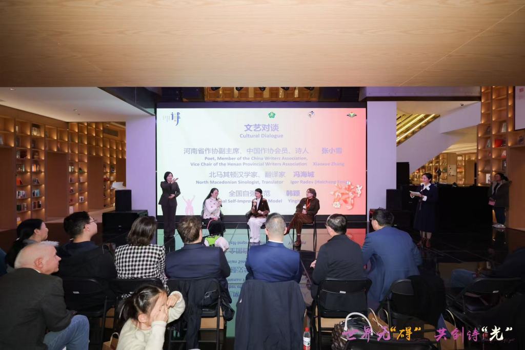 在交流对谈环节,中国诗人梁晓明和意大利诗人弗拉米尼亚克鲁恰尼发表了对本届国际诗歌节的感想,并为残疾人文学爱好者送上鼓励,全国自强模范韩颖也与河南省作协副主席、诗人张晓雪,以及来自马其顿的诗人、汉学家冯海城共同交流探讨文学创作方面的心得,不同文化背景下的思想碰撞,为残健共融的中外文化交流增添了浓墨重彩的一笔。