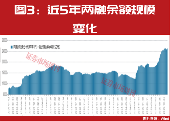 截至12月9日的最新收盘数据显示,两融资金在近3个交易日连续上涨之后达到2.51万亿元,继今年10月29日突破2.5万亿元之后再次创下历史新高(见图3)。