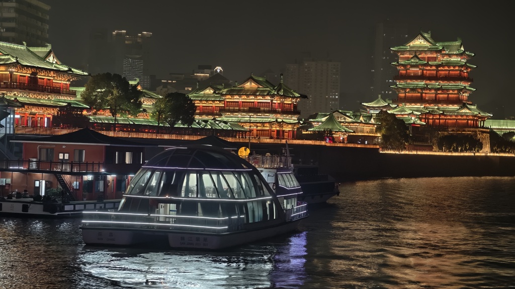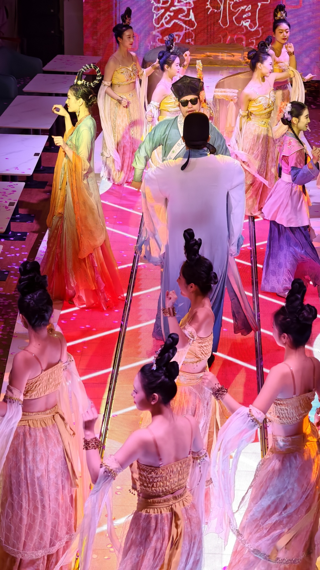 在12月10日晚的赣江游轮之上,还上演着沉浸式剧目《新琵琶行》。装扮成白居易和唐代歌姬的演员们一起,将观众带入“枫叶荻花秋瑟瑟”的浔阳江头,让历史在江风中“复活”。