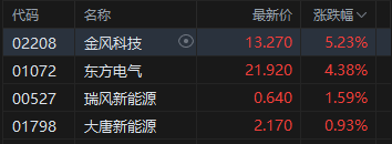 风电股涨幅居前,金风科技涨超5%。西部证券发布研报称,风电行业保持高景气度,梳理2条选股主线:(1)风机中标价格表现优异,风机盈利有望回暖,且后续装机量方面具备超预期潜力,海外风电需求高增进一步打开成长空间,风机及零部件环节有望量利齐升,重视风机+零部件投资机会。(2)国内外海风需求共振,持续看好海风成长性。国内海风项目推进顺利,预计2025-2026年国内海风装机量高增,后续国内深远海海风打开海上风电成长空间。海外海风景气度高,看好海风出海。