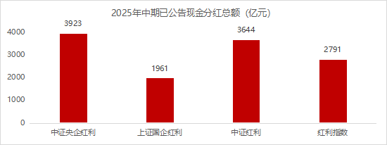在良好盈利水平的加持下,央企红利指数成份股的现金实力也较为突出。根据2025年中期报告数据,央企红利指数的成份股累计现金分红达3923亿元,占同期全部A股分红总额的57%,不仅在A股市场具有较高的分红贡献度,也显著优于中证红利等部分A股主流红利类指数。