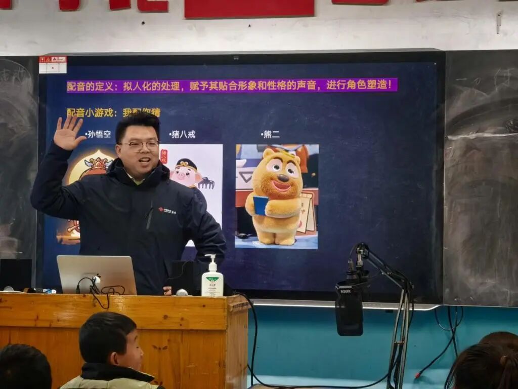 配音演员、导演孔新在第一堂课上就遭遇了“意外”。他没想到,乡村孩子的自我表达欲如此强烈,眼中的渴望如此直白。“他们很阳光,想往前冲。”捕捉到这一点后,孔新及时调整教学策略,把时间尽可能多地留给孩子们去体验配音。在麦克风前,当孩子们第一次听到自己被放大、被修饰后的声音时,那种既羞涩又自豪的神情,是孔新此行最珍贵的收获。他希望能撒下一颗声音艺术的种子,让孩子们自信地表达自我。