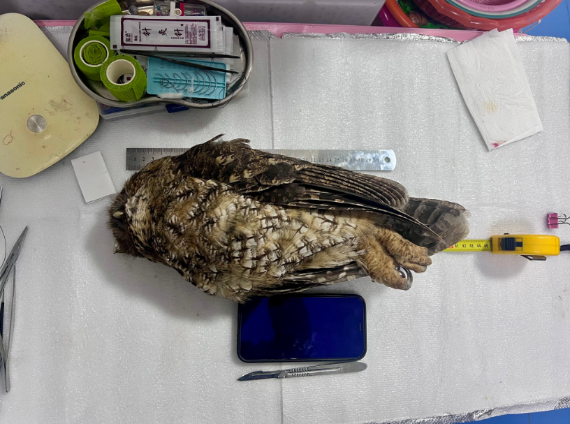 经检查和解剖,这只灰林鸮体重516克,体长42厘米。“可以判断是一只雌性个体,脂肪的储存量非常大,胸部的龙骨凹陷,肌肉突出,是一个很健康的成年个体。”尹军说,“这是上海的第一笔记录,很悲哀,也很无奈。”