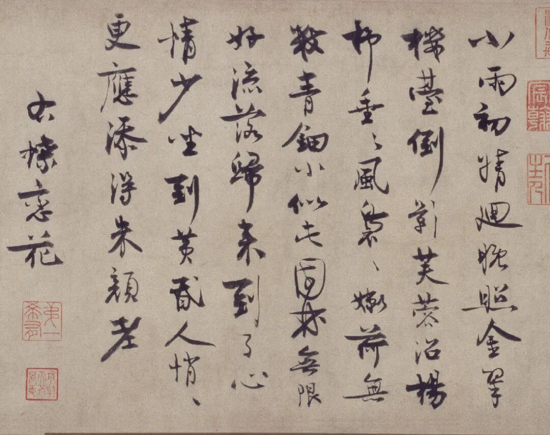 此外,北宋驸马、画家王诜的《行草书自书诗词卷》,与“宋四家”之一米芾的《行书三札卷》并列展出。三卷墨宝辉映,瞬间将观者带入当年汴京文人雅集的现场:他们赏玩书画,诗词唱和,品鉴古器,在思想的碰撞与情感的共鸣中,共同塑造着一个时代的审美高峰。