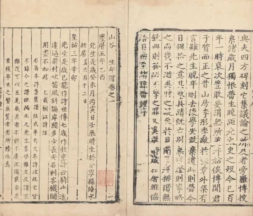 宋黄㽦编《山谷先生年谱》 明弘治叶天爵刻 嘉靖六年(1527)乔迁、余载仕重修本