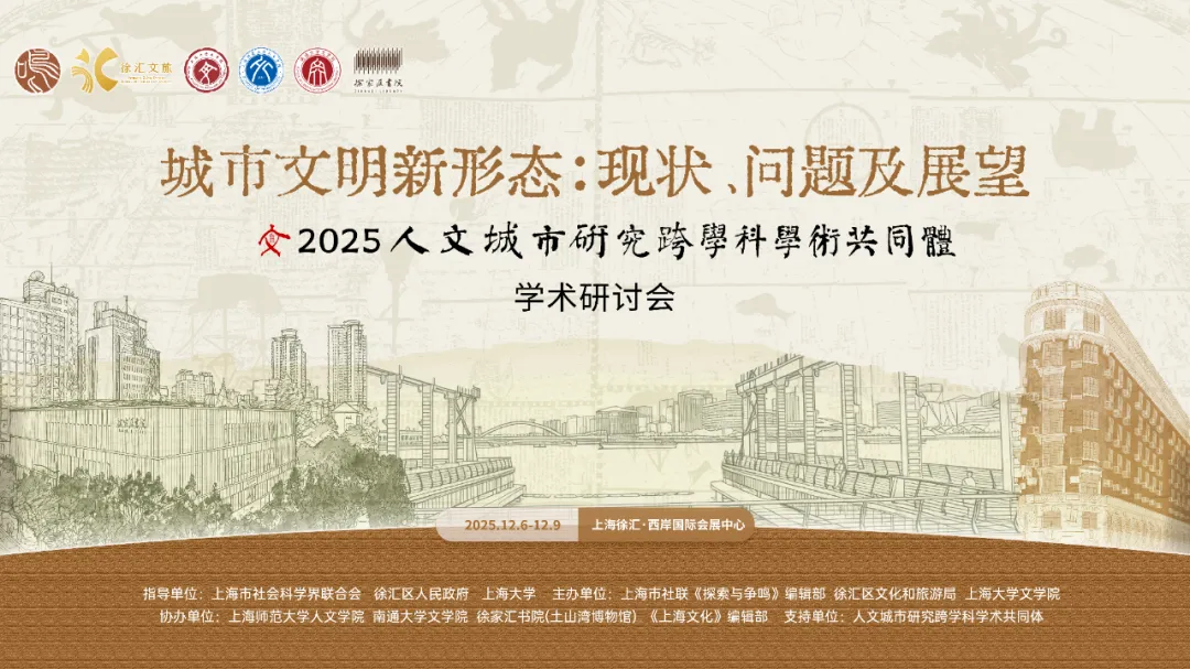 从乡土中国、城乡中国到城市中国,不仅是正在发生着的经济社会转型现实,更是人文城市的新生与城市文明的新变。为深入探讨城市文明发展现状、问题与未来,推动人文关怀深度融入城市治理,促进人民城市建设,共塑城市文明新形态。2025年12月7日至8日,由《探索与争鸣》编辑部、徐汇区文化和旅游局、上海大学文学院联合主办,上海师范大学人文学院、南通大学文学院、徐家汇书院(土山湾博物馆)、《上海文化》编辑部协办,人文城市研究跨学科学术共同体支持的“第二届(2025)人文城市研究跨学科学术共同体学术研讨会”在上海西岸国际会展中心召开。本次会议以“城市文明新形态:现状、问题及展望”为主题,旨在汇聚跨学科学术智慧,回应中国式现代化征程中的人文城市命题,共同探索具有中国特色、体现时代精神的城市文明发展新路径。本次会议设三个分论坛,于12月7日下午召开,各分论坛围绕“城市文明新形态与中国式现代化”“人文城市研究的新问题、新路径与新方法”“海派文化与人文之城”展开深入讨论。