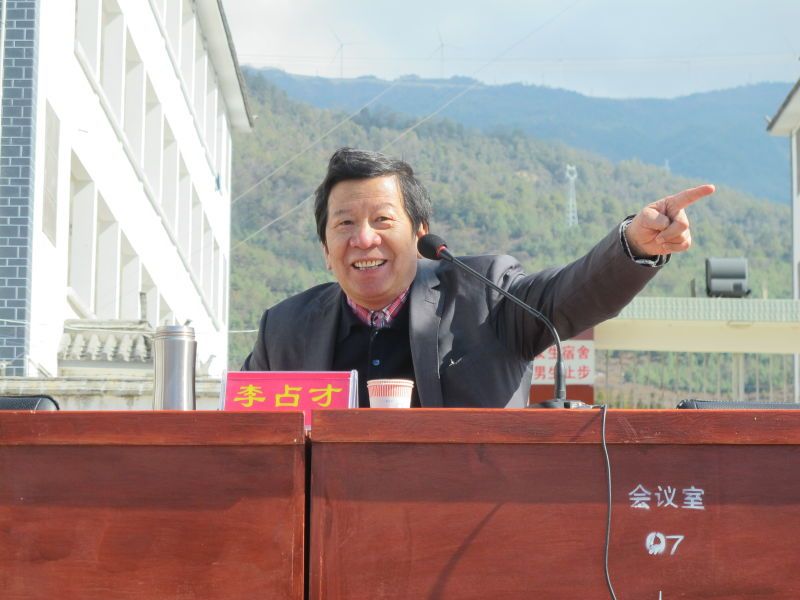 李占才在云南云龙二中大操场为两千多名中学生讲课