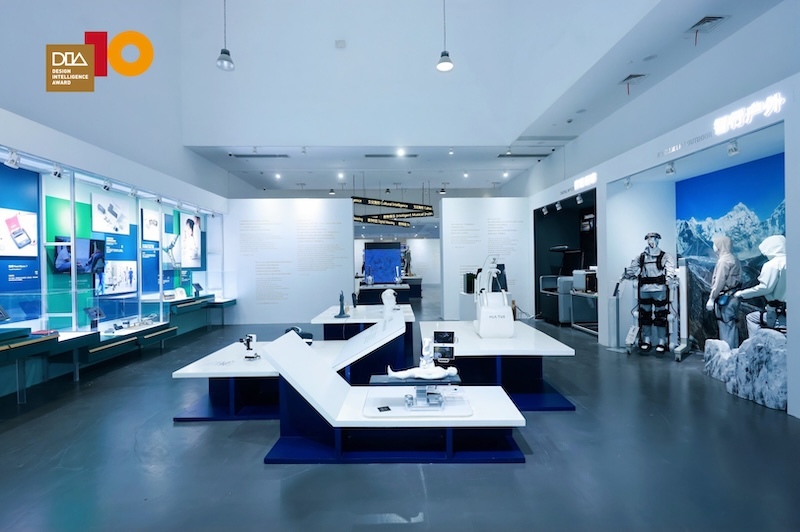 展览的第一单元“跨越智能”通过人形机器人、智能穿戴与大模型应用等案例,展示人工智能如何深入空间、物质与交互之中,使机器具备“理解环境、适应情境、融入环境”的综合能力。而“数智医疗”单元则汇聚智能诊断设备、可穿戴健康监测等案例,展示设计如何在技术与用户间架起桥梁,使复杂医学能力可视化、普惠化,让健康服务突破场景限制走向家庭与社区,让健康管理真正融入每个人的生活。例如,“增强外骨骼”案例呈现了外骨骼以智能感知与动力辅助增强人体行动能力,支持康复、代偿与能力扩展;“AI介入康复”案例则融合脑机接口与智慧康复系统,通过精准感知、实时反馈与个性化训练方案来提升神经重建与功能恢复效率。
