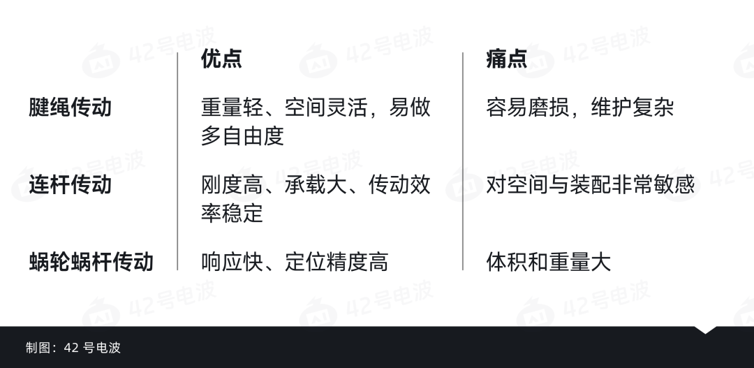 在这中间,传动是行业内技术路线选择比较多样的环节,其中腱绳传动有重量轻、空间灵活,易做多自由度等优点,但最大的痛点就是容易磨损,而且维护起来比较复杂。