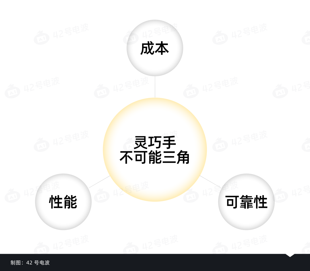 不过要想真正造出一双稳定、好用的灵巧手是很难的事情,成本、性能和可靠性的「不可能三角」也是困扰整个行业已久的问题。