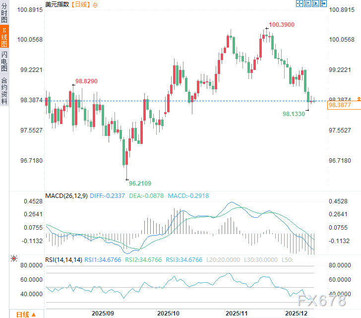 (美元指数日线图,来源:易汇通)北京时间13:23,美元指数现报98.38。
