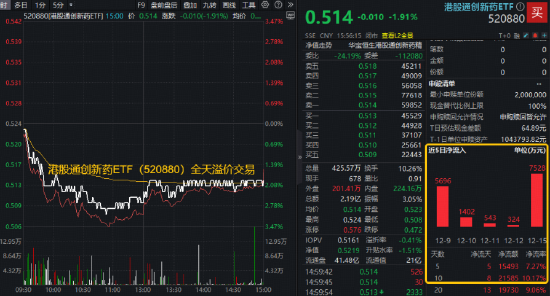 从资金动向来看,近期逢跌分批吸筹动作明显。昨日板块大幅调整,港股通创新药ETF(520880)单日获超7500万元净申购,至此520880已连续6日吸金合计超2亿元,份额升至41.48亿份新高!今日场内延续宽幅溢价,显示买盘资金仍强势。