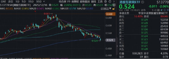 隔夜美股恐慌情绪蔓延,港股低开低走,AI主线跌幅居前。阿里巴巴-W盘中下挫逾4%,收跌2.96%;小米集团-W跌超2%,腾讯控股、美团-W跌逾1%。港股AI核心工具——港股互联网ETF(513770)回落至年线下方,盘中刷新7月8日以来新低,场内价格收跌2.06%。