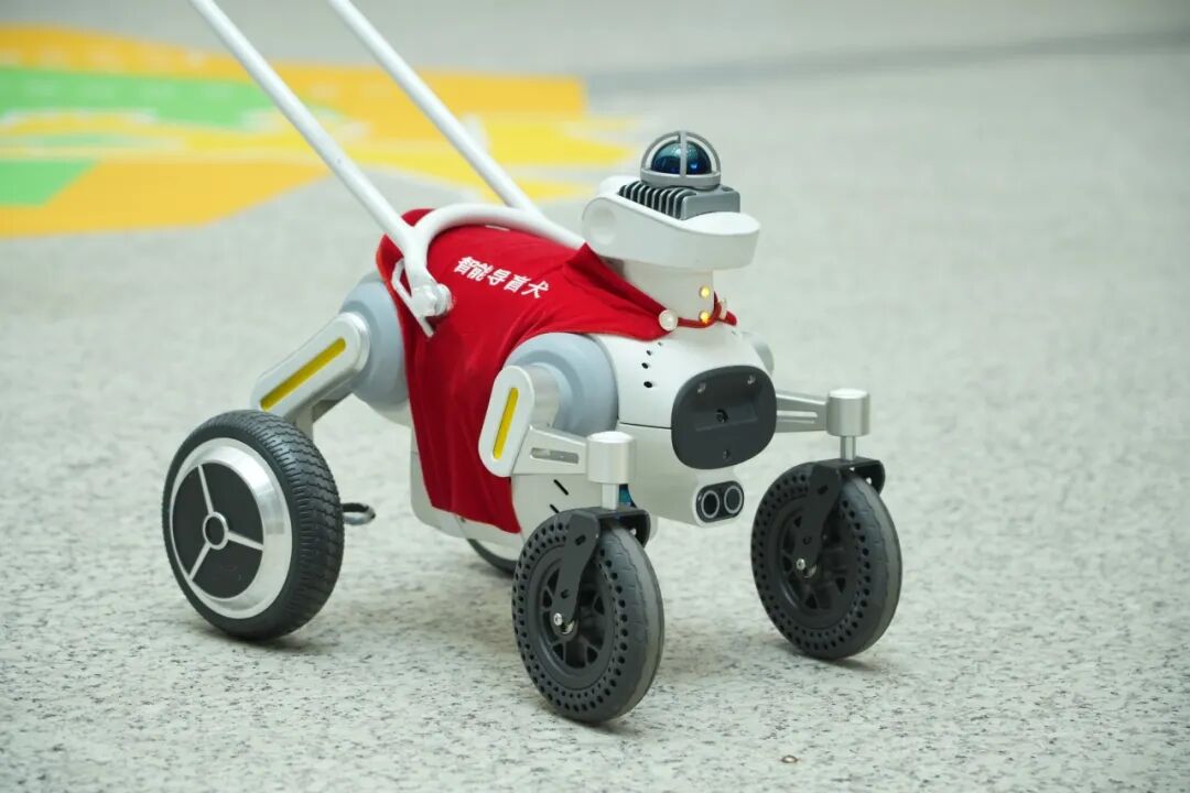 深圳地铁黄木岗交通枢纽内,一台外形酷似小狗的智能导盲犬,正牵引着一位视障人士平稳穿过通道,前往目标服务点。它通过背部的扶手与使用者连接,以四轮行进,在遇到转弯、障碍或悬空边缘时,会及时发出语音提示并主动避障。视障乘客只需通过口头指令,便能唤醒其路径规划、精准导航、智能避障、盲道跟随、视觉识别与语音交互等一系列功能。