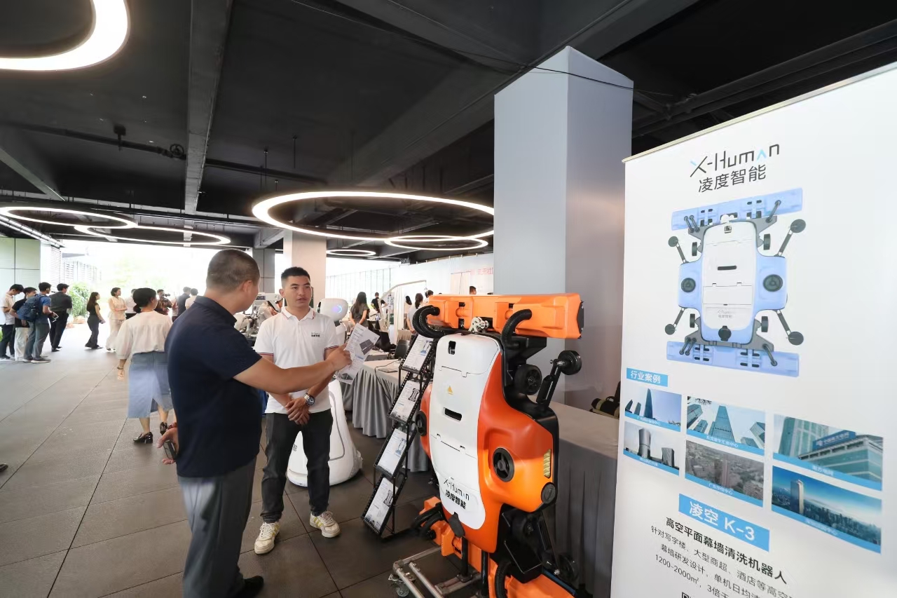 率先实现高空玻璃幕墙清洗机器人商用量产的广东凌度智能科技发展有限公司,展出全球首台跨步式多功能越障清洁机器人凌云Y3,该机器人具备自主跨越障碍、机载电池供电、自带水箱、水循环回收和幕墙质量检测功能,填补我国摩天大楼高空清洗越障机器人技术空白,产品海内外市场占有率靠前。