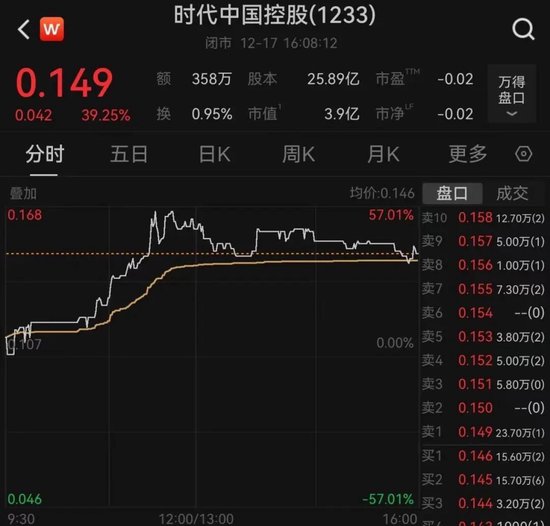 时代中国控股上涨39.25%,盘中一度涨超57%。