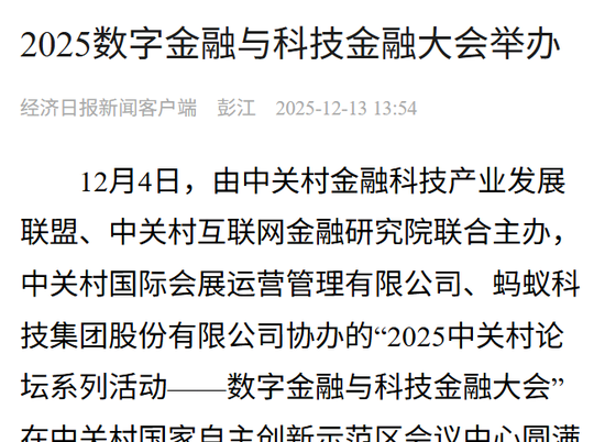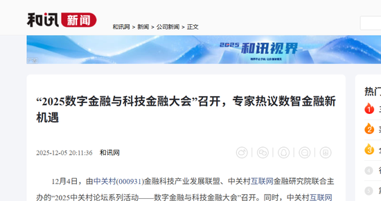 2025年12月4日,“2025数字金融与科技金融大会”作为中关村论坛系列活动的重要组成部分在北京举行。大会聚焦“构建数智金融新生态,共绘十五五新蓝图”的核心主题,获得多家媒体的广泛关注与深度报道,形成了立体化的传播效应。