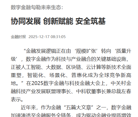 中央级财经媒体及行业报纸随后进行了深度聚焦。《金融时报》于12月17日刊发《协同发展 创新赋能 安全筑基》文章。