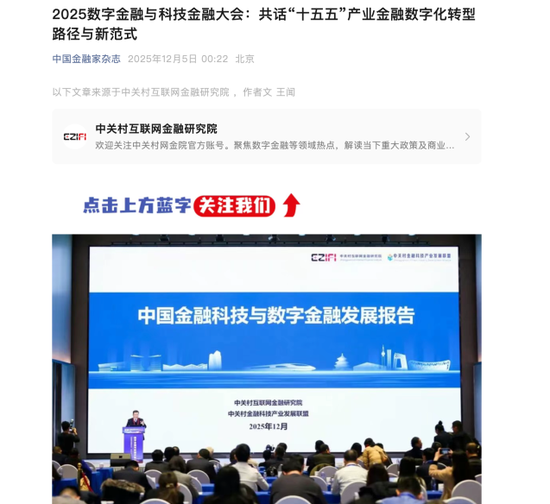 《保险报》则于12月9日发表《共话“十五五”时期数字金融发展路线》文章。