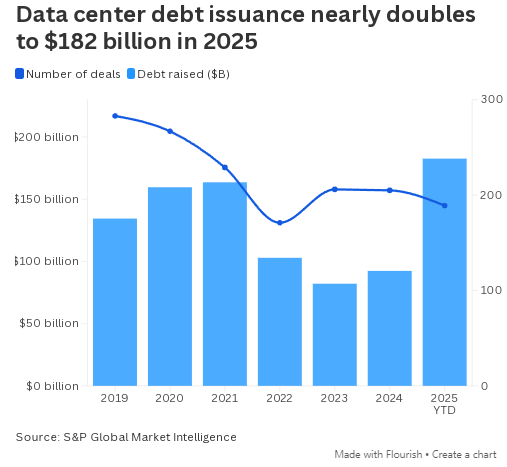 - 标普全球预计,尽管高估值与融资担忧令投资者担心市场存在泡沫,但明年数据中心需求仍将持续增长。
