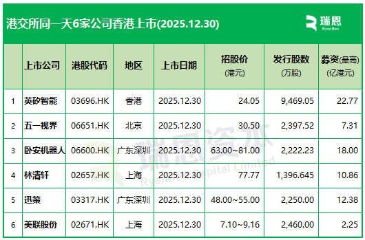 2025年末倒数第二个交易日登陆港股市场的6家公司,分别为: