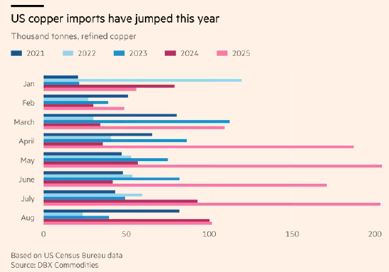 今年,随着进口商急于在特朗普政府征收铜关税之前将金属运入美国,大量铜流入美国。
