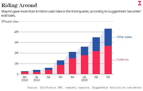 尽管遭遇旧金山停电期间暂停服务等小波折,但Waymo近月来的快速扩张,彰显其有望逐步匹配这一高估值。随着该公司在各大城市新增用户、推出新服务 —— 无论是从(Uber)、来福车()手中抢占市场份额,还是挖掘全新市场需求,其营收规模都将稳步增长。
