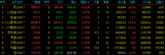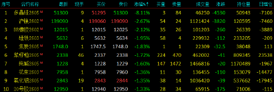 2026年1月9日,国内期货主力合约涨跌不一,钯涨超6%,低硫、SC涨超3%,燃料油涨超2%,、、、铂涨超1%。跌幅方面,多晶硅跌超8%,、BR跌超2%,、、、跌近2%。