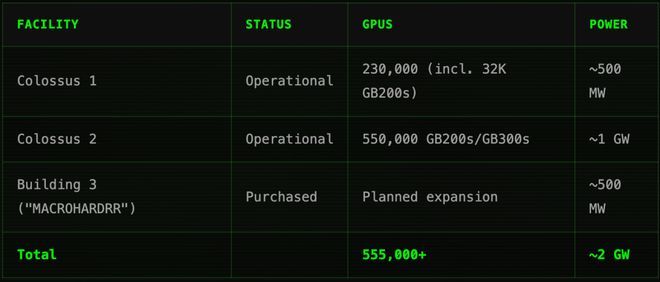 OpenAI、Anthropic在内的很多劲敌还在规划2027年路线图,xAI这边直接把「城市级」算力搞定了。