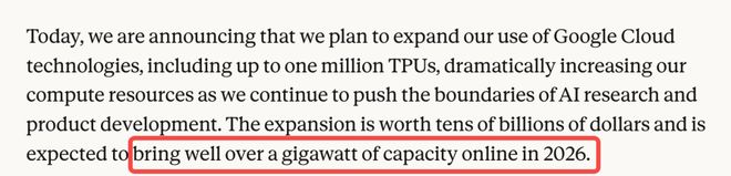 去年10月官宣,将把Google Cloud TPU扩展到最多100万颗TPU,合同价值数百亿美元。