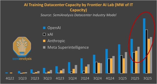 2022年GPT发布以来,OpenAI、xAI、Anthropic、Meta Superintelligence等AI训练算力飙升