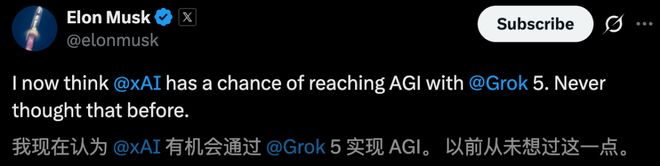 马斯克曾坚定地表示,xAI有机会通过Grok 5实现AGI。