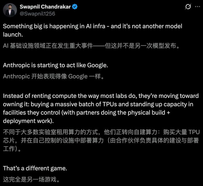 Anthropic选择了一条更聚焦的路线:深度绑定Google Cloud的TPU。