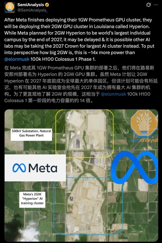 早在去年,小扎就公开了资金代号Prometheus(普罗米修斯)的GW级AI超算项目,目标在2026年上半年上线。