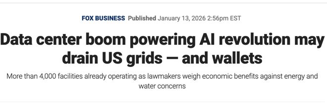 一方面,数据中心建设热潮助推了AI革命;另一方面,AI热潮可能耗尽美国电网资源、榨干普通人的钱包。