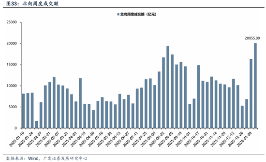 北向资金本周日均成交额增加。本周(1月12日—1月16日)北向资金总成交金额为2.01万亿元,日均成交额为5014.00亿元,较上周日均成交金额增加924.61亿元。