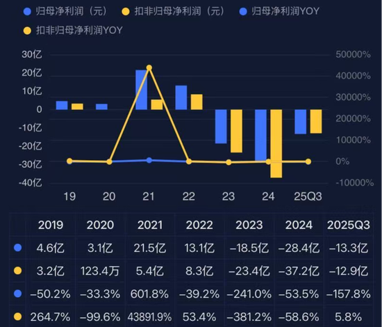 易华录是2011年在深交所上市的,也曾在2021、2022年风光无两,但紧接着便迎来连续3年亏损,目前来看,仅截止2025年三季末,累计亏损便超过了60亿。