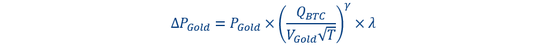 为了预测比特币市场崩溃的情况下,黄金作为全球避险货币可能的涨幅,我们采用Amihud(2002)的价格冲击模型去计算比特币崩溃下的黄金价格。Amihud(2002)讨论了价格冲击与交易量和市场深度的关系。因此,我们构建的流动性冲击模型为: