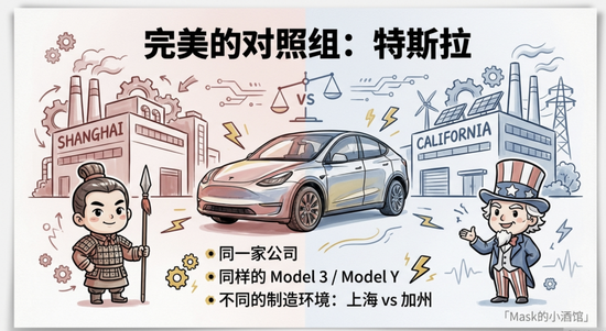 特斯拉是用来对比中美差距最理想的公司:同一家公司,同样的Model 3和Model Y,一个厂在加州,一个厂在上海。