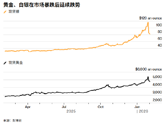 彭博社指出,白银/黄金比率的涨幅几乎与上世纪70年代末的水平相当,而如今的剧烈波动表明,这或许标志着价格的回调点。然而,黄金和白银单独来看,迄今为止都未能重现1979年的涨势。白银/黄金比率是否预示着贵金属历史性上涨行情的终结,现在下结论还为时尚早。但目前价格已成为主要驱动力,基本面暂时退居其次。