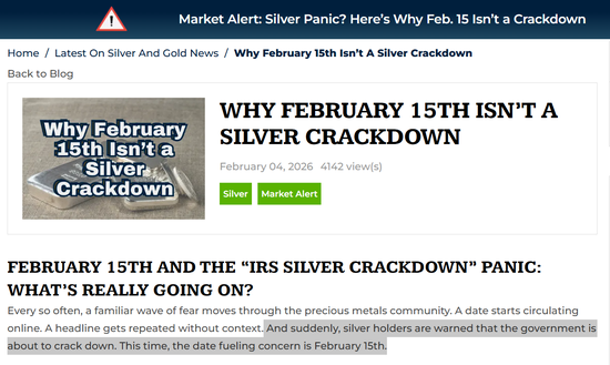 U.S. Gold Bureau的文章解释称,2月15日并非国税局的新打击行动。它并非一项针对白银的专门规定,也并非所有权法律突然改变的证据。它实际上代表着一个长期存在的文书工作截止日期——一个被误解并被放大成恐惧的日期。