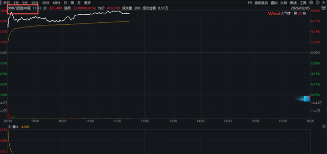 另外,百胜中国股价大涨,盘中涨幅一度超过9%。