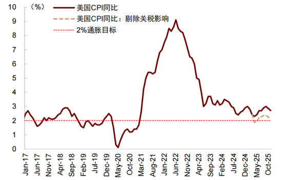 对美国通胀路径的预测是我们推导美联储今年“先鹰后鸽”的重要依据。在《重估美国通胀风险与市场影响》中,我们系统剖析了美国10-11月通胀数据的三种偏差来源,预测2025年12月、2026年1月与2026年4月通胀环比可能出现补偿性抬升。叠加关税成本继续从企业端向居民端传导,美国通胀同比在2026年上半年可能继续上行。