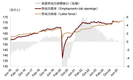 图表21: 尽管就业人数减少,但美国劳动力市场供需两弱,并未出现失衡