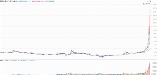 截至1月29日,最近一个多月里,白银LOF涨到了最高5.247元,短期内涨幅超过240%(上图)。