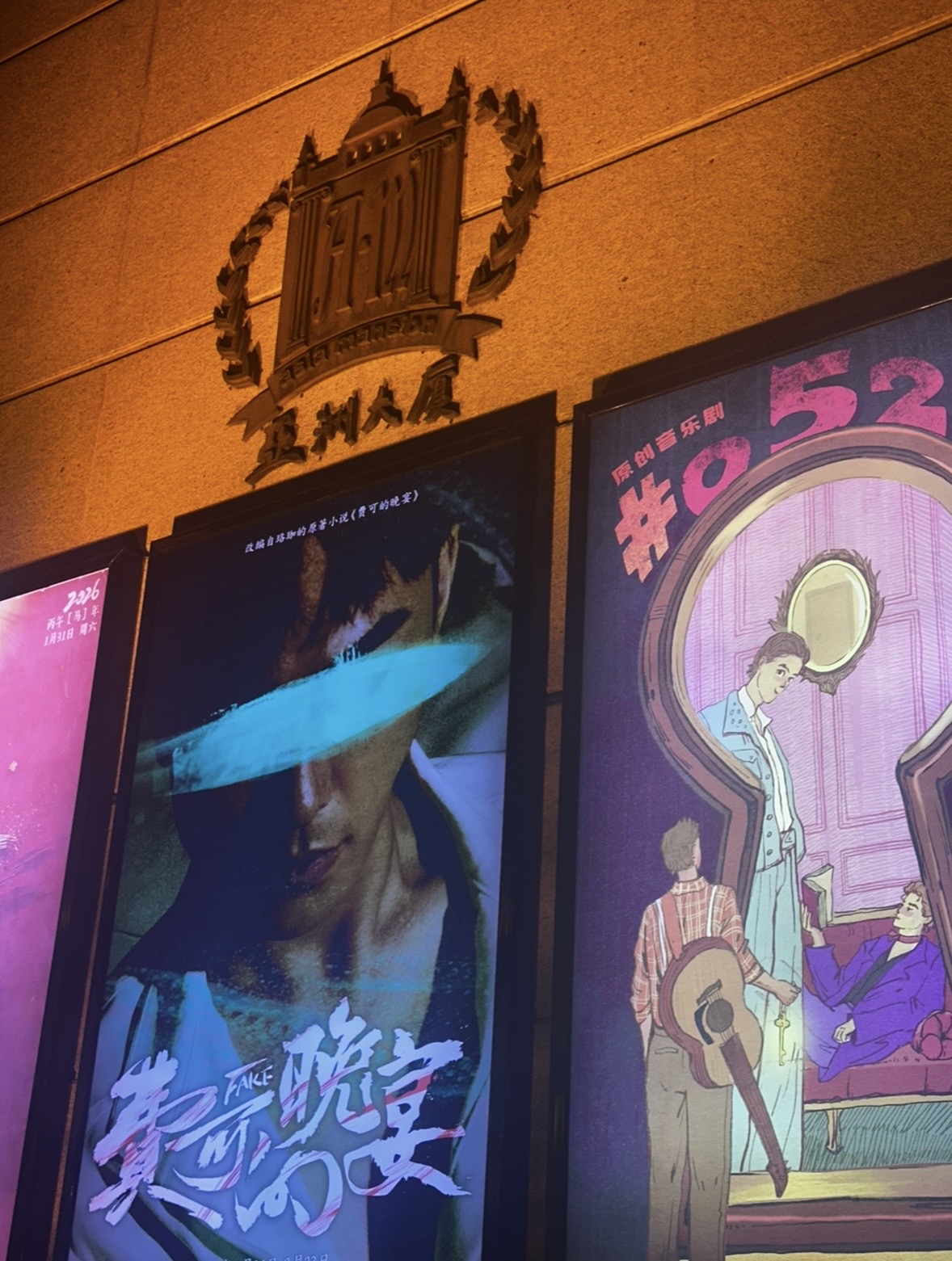 在界面文化探访的这日,sd已经持续了两个小时,但人群还未完全散开。推着拉杆箱的几个女生在人群中也颇为打眼,她们是趁寒假专门从外地赶来的观众,眼下正要赶地铁末班车回酒店。也有观众结伴走进街对面的海鲜餐厅,继续着未聊完的话题。餐厅隔壁的奶茶店亦灯火通明,橱窗上贴着祝福某音乐剧演员末场演出顺利的海报。此时已临近午夜,亚洲大厦的大门终于落锁,原本在一楼的应援花架被拆放在地面上,换下工作服的保安和保洁抱起铁杆一趟趟送上货车。这栋建筑里的小剧场演出,让上海一个城市街区的冬夜依然弥漫着余温。