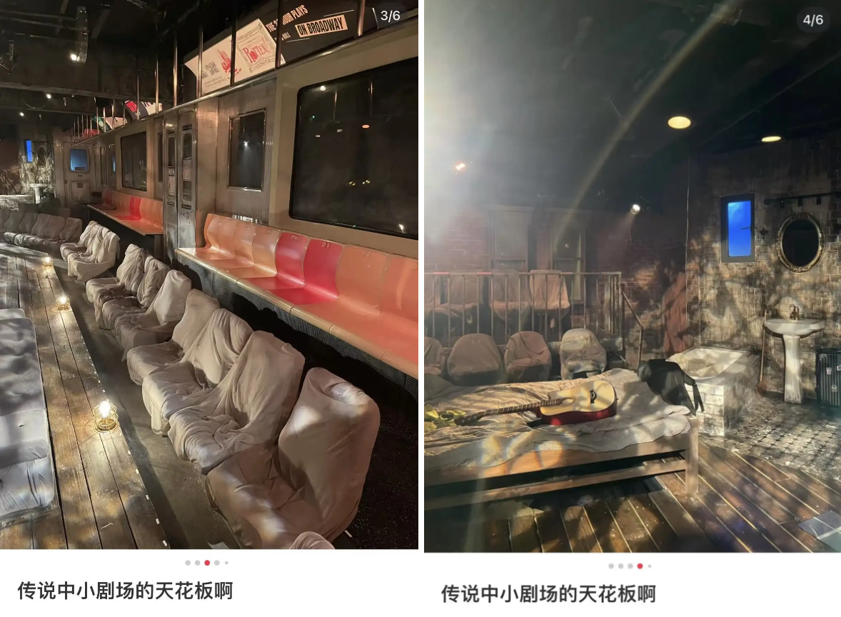 大世界楼下有十几个餐饮消费点,许丽团队会鼓励他们尽量满足粉丝的应援需求,若配合较好还有额外奖励。同时,大世界亲自设计了许多联动方式,在酒吧推出和正演出剧目同款主题的精酿,而当观众看完剧后想要沟通剧情,凑在一块聚餐时,许丽团队也会安排同一场的演员时不时现身餐厅,带给他们惊喜。在许丽看来,楼上的剧目和楼下的商业目前形成了很好的共生。