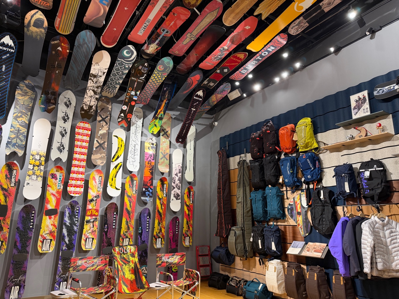 Boardroom目前引入了JONES、BURTON、NITRO、IFUBUKI以及国产护具品牌Arkus等十余个滑雪相关品牌。相比传统运动零售门店,其更强调文化展示与社群运营,二层还设有丹麦滑雪历史展区。